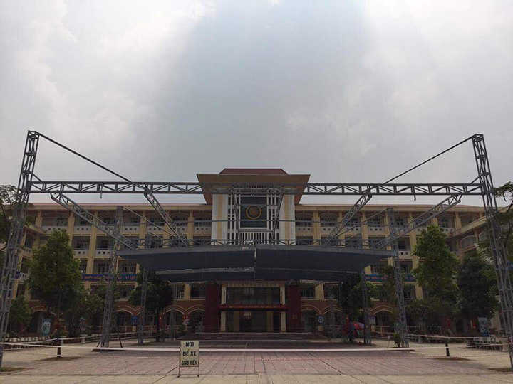 - Hệ thống mái kéo sắt 20 x 40m, dày 1,2 ly, thanh sắt hộp chịu tấm mái (bạt) kéo.